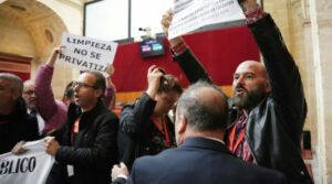 Antes de preguntarnos… ¿ Cual sería la justificación de dicha privatización ?, deberíamos partir de la premisa de que los servicios públicos no son un negocio, sino un «derecho» de la ciudadanía, y por tanto sus trabajadores y trabajadoras, de igual modo debieran estar protegidos por la administración, al igual que los servicios que realizan. En este caso son 300 los trabajadores y trabajadoras de la plantilla municipal de limpiadores de colegios, que van a la calle por «imperativo municipal». Tal es la situación de desesperación de este colectivo, que han trasladado sus protestas en forma de acampada en la Plaza Sevillana de Puerta de Jerez. Motivo por el cual el alcalde ha mostrado su enfado, con un intento de desalojo que ha pasado incluso por la «insinuación burlesca» de no haber pagado la correspondiente tasa por ocupación de vía pública para la acampada. La tacha de ilegal y alega sobre la privatización del servicio, que su «único objetivo es mejorar la limpieza de los colegios públicos de Sevilla». La típica estrategia de desprestigiar el servicio público para justificar su privatización y el encarecimiento de los costes. Cuando a nadie se le escapa, que las privatizaciones que se han hecho a cualquier servicio público en la práctica, se han traducido en: precariedad laboral, reducción del personal a la mitad, merma y empeoramiento del servicio y la calidad prestada, y un largo etcétera en negativo para los trabajadores y la ciudadanía, pero que llena los bolsillos en positivo, del empresario o fondo de inversión al que se le otorga dicha licitación.